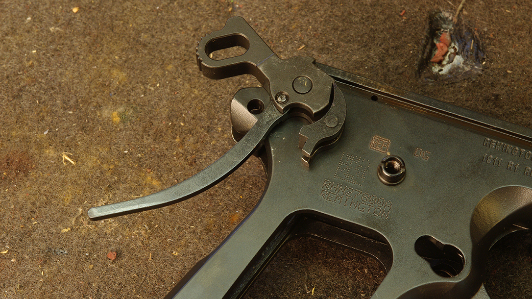 Start off by taking the gun apart. There are volumes written on how to do that and my space here is limited, so I won’t go into a lot of detail. Separate the upper and lower, and set the upper aside. Then remove the grips, pull out the safety (don’t let the safety lock plunger fly away under spring power), remove the grip safety, slide off the mainspring housing (after removing the pin at the bottom) and remove the sear spring.