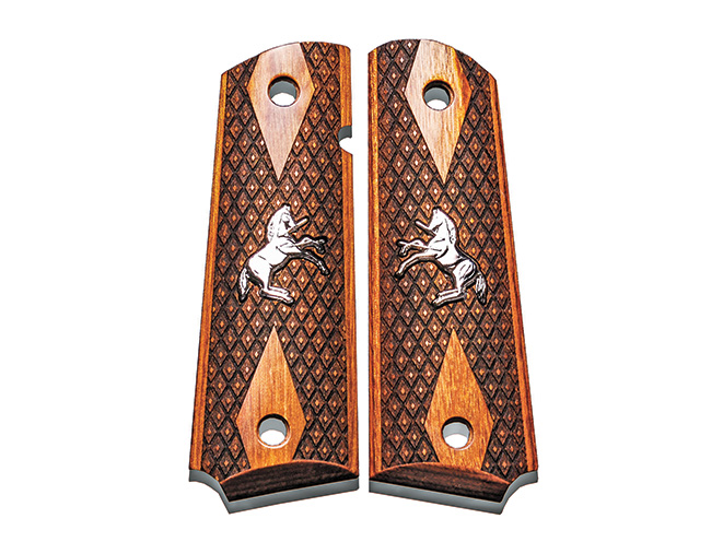 These striking grips feature deep grooves for aesthetics and traction as well as Altamont’s Spanish Diamond checkering, where small diamonds are each topped with even smaller diamonds to enhance your grip from any direction to tame recoil. The grips also sport a silver horse inset for striking looks.