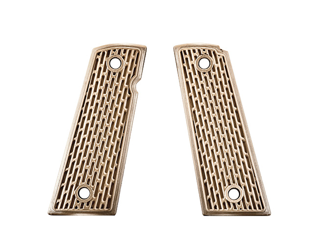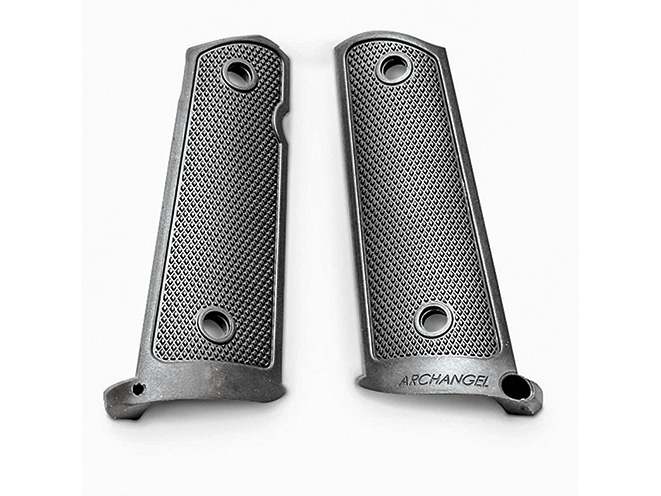 Archangel Manufacturing offers a number of aftermarket stocks and accessories for rifles, and now the company is offering grip panels for the 1911, including these lightweight aluminum panels, which come with an integral magazine well to speed up reloads. If you don’t want the magazine well, more traditional aluminum grips are available.