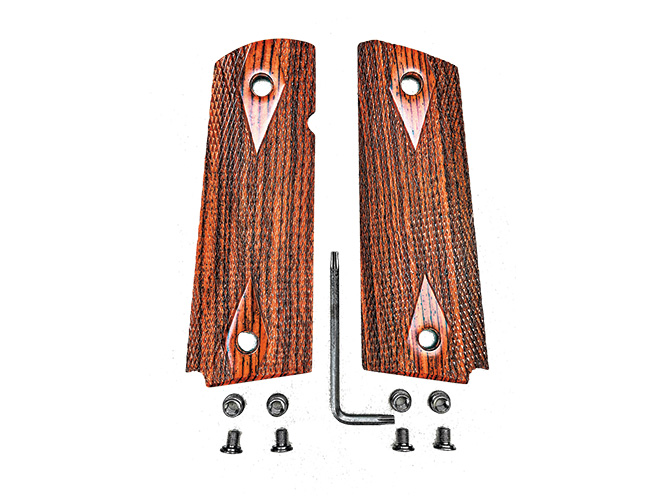 This established maker of aftermarket 1911 magazines also offers several accessories for the 1911, including grips in two thicknesses: regular and Slim Carry grips. Made of rosewood, they are cut and finished to provide a solid, classic-style, double-diamond surface while being 40-percent thinner to accommodate shooters with shorter fingers or smaller hands.