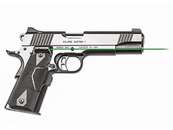 Using the smallest green laser diode available, the LG-401G emits a powerful green beam yet still provides over two hours of run time on four #2016 batteries. The LG-401G utilizes Crimson Trace’s Instinctive Activation technology: When the pistol is held in a normal firing grip, the laser sight is activated. A master on/off switch also allows the shooter to completely power down the unit for range training without the laser.