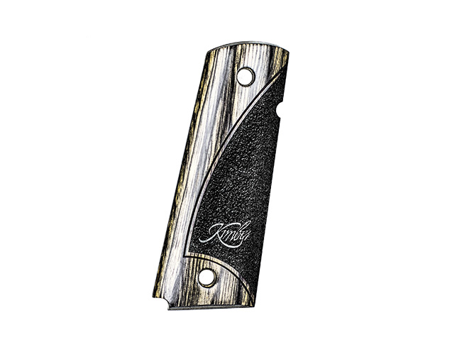 Kimber offers 1911 grips made from Micarta, wood laminate, aluminum, even dyed giraffe bone. The sizes run the gamut of 1911 configurations. Particularly striking are Kimber’s black and silver “Smooth Stipple/Scallop” grips, which feature a somewhat unique approach to surface texture: the combination of smooth sections with “smooth stippling” sections, where the wood laminate is stippled and scalloped in a fine way to present good traction without being abrasive during long range sessions.