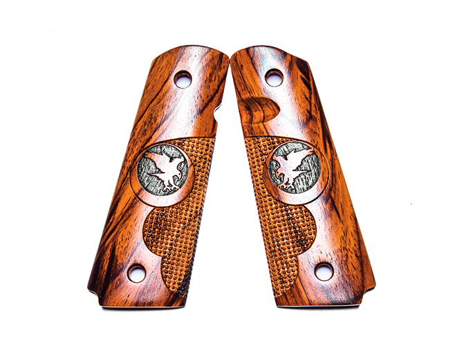 To go with its high-end custom pistols, Nighthawk has developed a full line of custom grips that incorporate cocobolo hardwood, aluminum and G10 materials to fit the full range of 1911 frames. The designs reflect a range of styles—some with thumb scoops for reaching the mag release more easily, others with various textures. The Cocobolo Finger Groove Pin Point grips have checkering that corresponds to your fingers and smooth surfaces elsewhere.