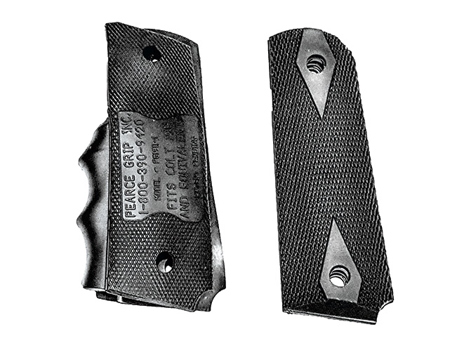Pearce Grips makes soft rubber grips for a range of defensive handguns, along with extended magazine baseplates that effectively lengthen the grip on subcompacts. Most intriguingly, the company offers rubber Finger Groove Inserts for 1911 shooters who want to add anti-slip finger grooves to their gun without altering their existing grips in any way. What look like grip panels actually mount underneath your existing grip panels, securing those finger grooves right where you want them.
