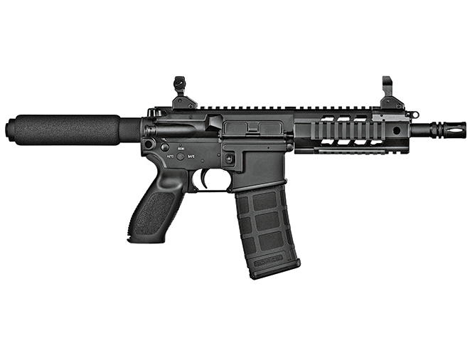 Home defense handguns also includes a unique category of firearms that are built on rifle platforms like the AR-15, and while they are in fact handguns, their general purpose is to provide close-quarters battle (CQB) defensive firepower combined with the same optics and tactical accessories used on rifles.
