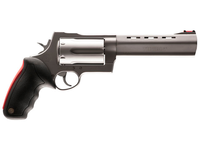 The home defense handguns category also opens the door to larger sized multi-purpose revolvers like the Taurus Judge and S&W Governor chambered for a variety of calibers from .45 Long Colt, .454 Casull and .45 ACP to 2½-inch and 3-inch .410 shotgun shells. The largest Judge models can chamber hard-hitting 3-inch magnum 000 buckshot, making these hefty, long-barreled revolvers practical for use both as a trail gun during hunting season as well as a home defense firearm. They can also be outfitted with laser grips or combination flashlight/laser sighting devices.