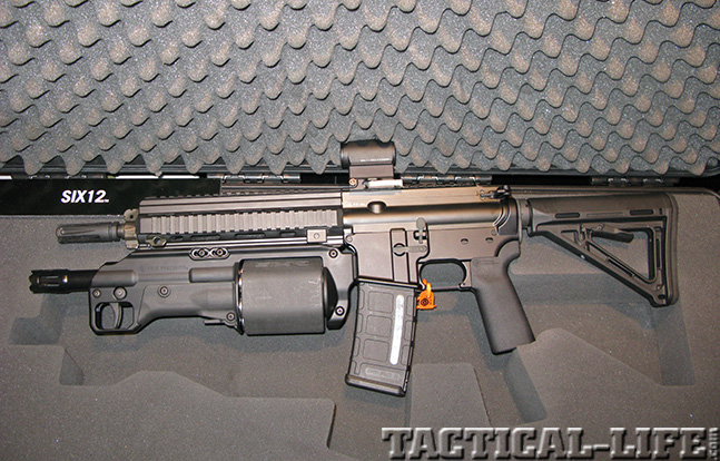 Crye Precision, known for its camo patterns and tactical kits, has entered the firearms market. Crye has developed the Six12 bullpup shotgun. This double-action, striker-fired shotgun holds six 12-gauge shells in a removable, rotating cartridge. The Crye Precision Six12 will also be available as an add-on option for an AR-style rifle and can be used as a breaching option with either a 12.5-inch shotgun barrel or a 10.5-inch rifle barrel for clearance. Military and law enforcement can expect the Six12 to be available in the winter of 2014, with the civilian market to follow.