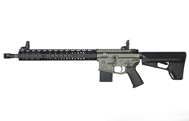 New from Houlding Precision Firearms is the upgraded HPF-15 Utility Battle Rifle (UBR), an AR-style rifle chambered in 5.56mm NATO. The receivers are CNC-machined from 7075-T6 aluminum billets with tight tolerances. Each rifle has been upgraded with an HPF Curse muzzle brake and a HPF-CMX key mod handguard, and the bolt carrier group is now finished with Houlding’s Super Slick coating. The UBR is a mid-length, direct-impingement system with a 16-inch barrel, a single-stage trigger and Magpul furniture.