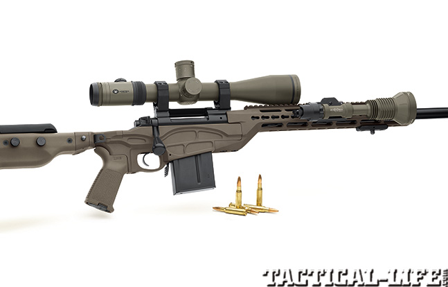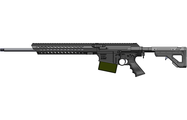 SWORD International has introduced a new high-caliber, AR-style rifle for its inventory. Chambered in .338 Lapua, the Mk-18 Mod 0 Mjölnir is a semi-automatic, gas-piston-operated rifle with a 22-inch barrel, 7075-T6 receivers, a full-length, free-floating KeyMod rail, and a non-reciprocating side charging handle.