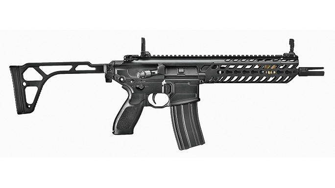 Designed from the ground up to accept multiple calibers, stocks and forends, the Sig Sauer MCX SBR is suppressor ready, lightweight and compact. The rifle uses a two-position-adjustable, short-stroke piston system that offers optimum reliability. The upper has several steel parts, including the feed ramp insert, cam path plate and charging handle latch points, as well as a replaceable forward assist housing. For more information, call 603-610-3000 or visit sigsauer.com.