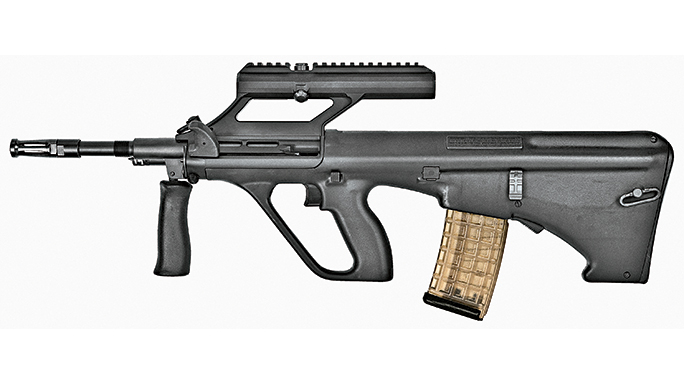 With its iconic bullpup design, the Steyr AUG/A3 SA M1 offers a relatively compact rifle while maintaining a longer 16-inch barrel. This model allows uses translucent AUG magazines and is available with an integral 1.5X or 3X optic, a short Picatinny top rail or a longer Picatinny top rail for various sights. The AUG/A3 M1 uses an adjustable short-stroke piston for clean running and enhanced reliability in harsh conditions. For more information, visit steyrarms.com or call 205-417-8644.