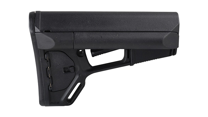 The Magpul ACS (Adaptable Carbine/Storage) is a drop-in replacement buttstock for AR-15/M4 carbines using mil-spec receiver extension tubes. Dual water-resistant battery storage tubes and an integrated storage compartment in the butt of the stock allow for multiple storage options. The ACS comes with a 0.3-inch thick rubber buttpad that prevents shoulder slippage even with body armor and other gear.