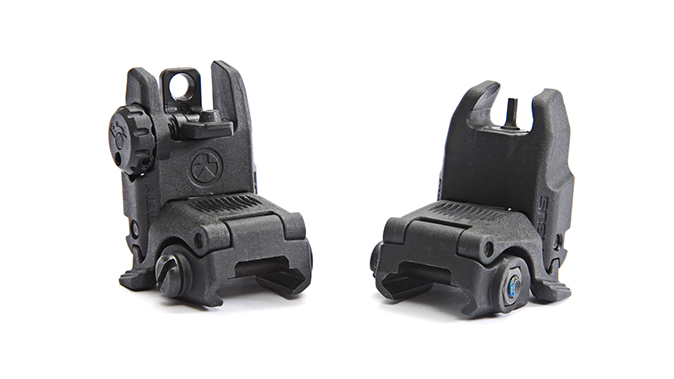These low-cost, injection-molded, folding front and rear backup sights are specifically designed for the AR platform. The MBUS rear sight is adjustable for windage, and the front is adjustable for elevation. Both sights are lightweight and highly durable, fitting most Picatinny rail-equipped weapons. Spring-loaded, these sights can easily be activated from either side by simply pressing down on the top portion of the sights.