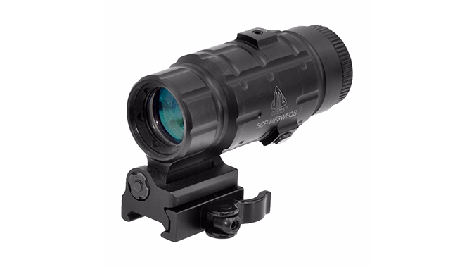 Get an up close and personal view of your target with this 3X optic. Featuring multi-coated lenses to provide a crisp image and an ultra-wide field of view, this magnifier also features windage and elevation controls for centering your sight. The exceptionally smooth adjustable eyepiece and innovative flip-to-side feature allows for easy transitions between 1X and 3X magnification. The housing is machined from aluminum.