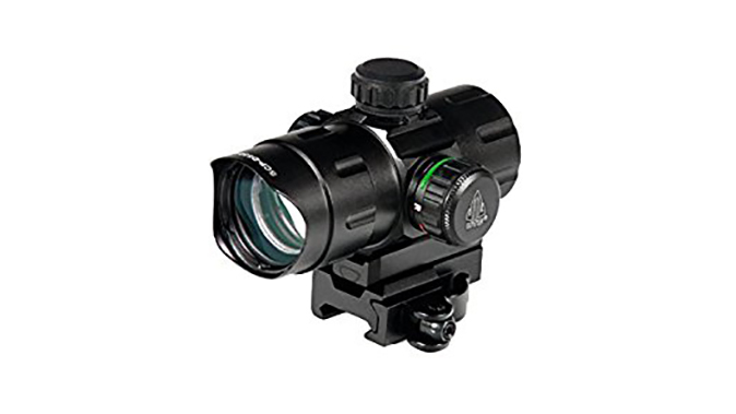 The UTG 4.2″ ITA Red/Green CQB Dot provides an excellent field of view and eye relief. This crystal-clear and sharp sight sits at an optimal height for use with an AR and is ideal for use in conjunction with iron sights. The reflection-limiting emerald coatings allow for a variable-brightness 4-MOA red/green dot to be viewed in a variety of conditions. A smart adapter and a convenient QD mounting deck for use on any rail are included.