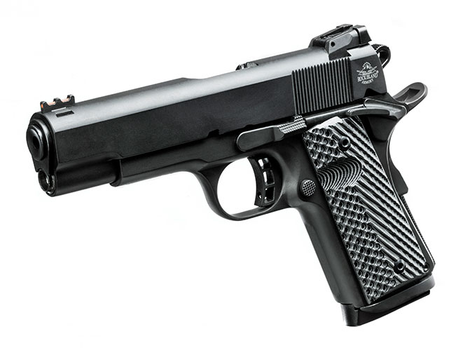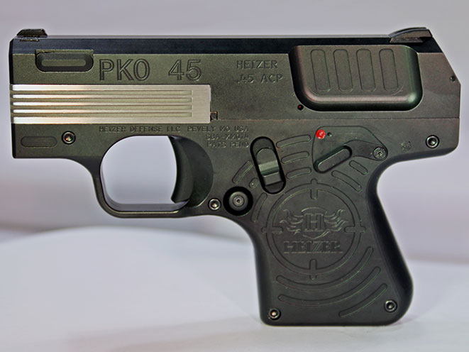 If you’re requirements are small and thin, look no further—the Heizer PKO 45 is only 0.8 inches wide and 5 inches long. It’s all steel, so despite its size it weighs in at a hefty 28 ounces. But, then again, it’s chambered for the .45 ACP cartridge, and it has a 5+1 capacity while an extended magazine ups it to 7+1. Controls like the ambidextrous safety and magazine release are flush-fit and the three-dot sights are affixed in dovetails. The rear slide serrations sit in a dished-out area. The barrel is under the recoil spring/guide rod, which lowers the bore axis to reduce recoil. This little pistol is truly in a class of its own. (http://www.heizerdefense.com; 888-965-0972)