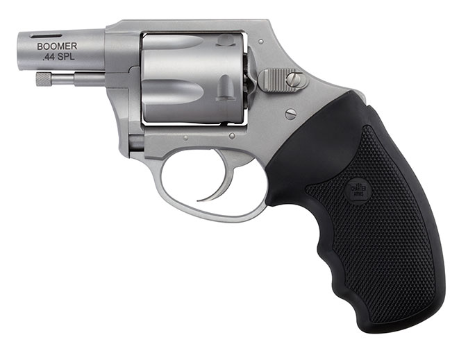 A compact version of Charter’s classic .44 Bulldog, the Boomer is designed specifically for concealed carry. It features a DAO hammer, full rubber combat grips and is available with a nitride or matte stainless finish. The Boomer’s 2-inch, tapered barrel is ported to reduce kick, and it has no front sight to snag and hinder a quick draw. (http://www.charterarms.com; 203-922-1652)