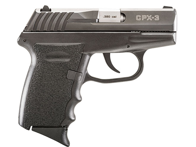 SCCY makes some of the smallest subcompacts in 9mm, and now the company has entered the .380 ACP market with its new CPX-3, which has a unique feature the company calls the “Roebuck Quad Lock” system. The barrel locks to the slide in four distinct areas, making the barrel and slide almost a solid piece for enhanced accuracy. With a polymer frame and stainless steel slide, the CPX-3 weighs just 15 ounces unloaded. The top of the slide is laser etched to reduce glare and is finished in black nitride or a natural matte finish. The DAO trigger is set at the factory for a pull weight of 8 pounds. (http://www.sccy.com; 866-729-7599)