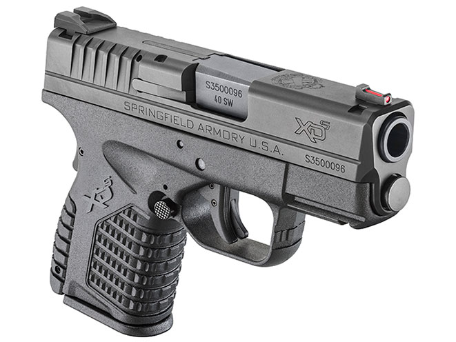 The popular Springfield XD-S 3.3” has been enhanced in 2016 with the addition of a version in .40 S&W. Single-column magazines with a flush-fit base carry six rounds, and a seven-round magazine comes with the Mid-Mag X-Tension base. This steel and polymer pistol weighs only 22 ounces with an empty magazine, and the integral grip is knurled for good hand purchase. A red fiber-optic front sight is mated with a fixed dovetail rear sight. (http://www.springfield-armory.com; 800-680-6866)
