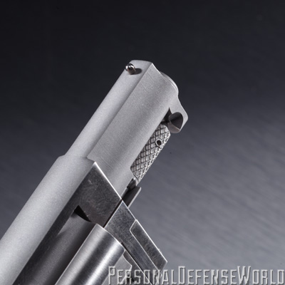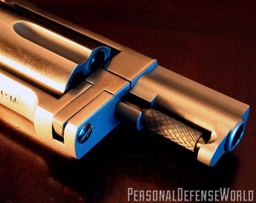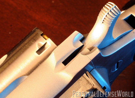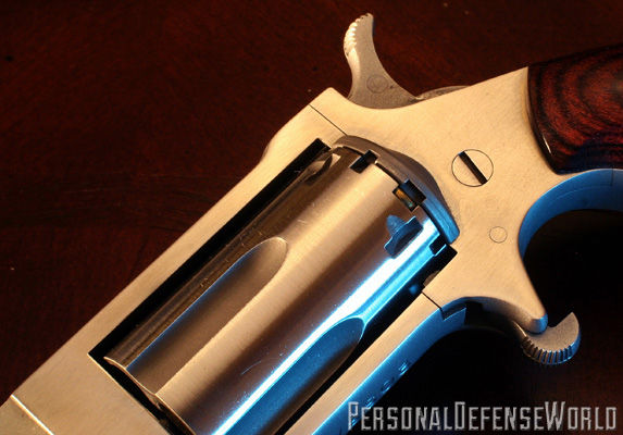 Machined from 17-4 PH stainless steel bar stock, the barrel itself is relatively flat on top with a very slight roundness and possesses a small underlug forming the retaining slot for the cylinder pin. The rate of twist for the 1-inch barrel is 1 in 12 inches with eight lands and grooves. NAA is exploring the possibility of using MIM (metal injection molding) to make the barrel, but personally, I believe the bar stock might make for a better barrel…