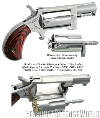 A while back I had a conversation with Sandy Chisholm, the owner of North American Arms (NAA), and we discussed the company’s guns. Afterward I asked the question that is on the minds of most writers when they’re talking to a gun manufacturer: Have you anything new brewing? Sandy proceeded to speak very cryptically about something in the works, which was going to be a first, not only for NAA but also for mini-revolvers all around. I tried to press him for more details, but it was clear he wanted to keep the project under wraps until the company could unveil it. Finally, as I prodded him to at least give me a hint of what was to come, he simply said, “Think in terms of a traditional, full-sized revolver.” That was all I got. But it all made sense when the Sidewinder finally hit the market in November 2012. Luckily, I had bugged General Manager Ken Friel for quite some time to make sure I got one of the first samples to test and evaluate.