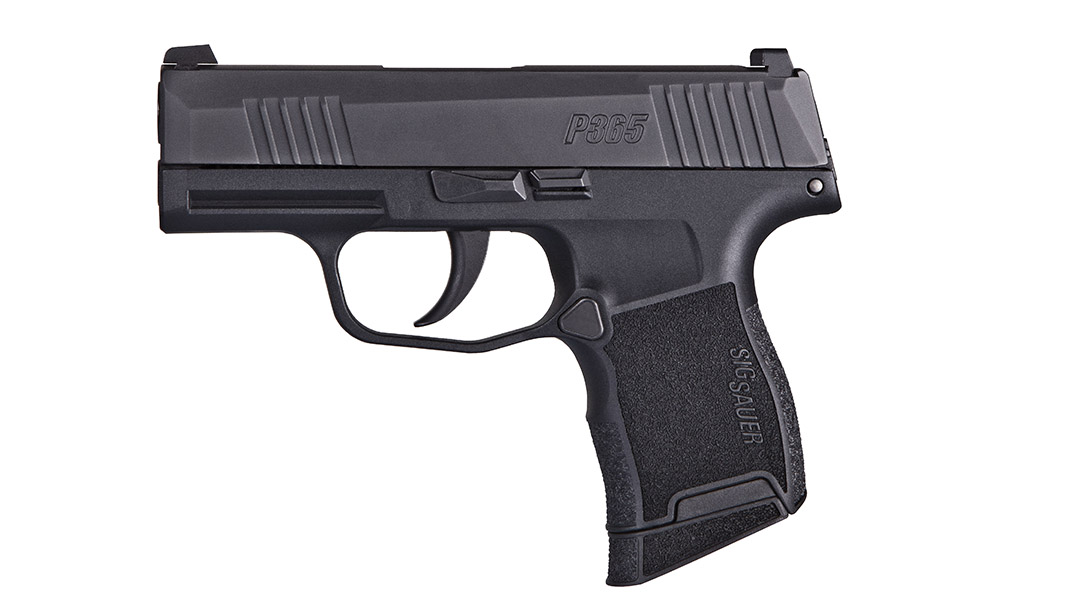 Sig’s new P365 is a very small 9mm carry pistol with a very large 10+1 capacity. At SHOT, a factory representative attributed the increase in capacity to the P365’s “stack and a half” magazine design. In addition, there’s an optional extended 12-round magazine that can be purchased from the factory. This pistol comes fully equipped with X-Ray day/night sights, a polymer frame and a Nitron-coated stainless steel slide. It is striker-fired, +P rated and weighs only 17.8 ounces unloaded while being 5.8 inches long, 4.3 inches tall and 1-inch wide.