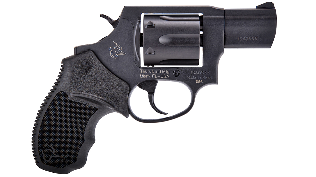 Taurus’ new Model 856 revolver is available in both matte blued carbon-steel and matte stainless steel variants. This six-shot DA/DA revolver has a 2-inch barrel with a fixed front sight. The rear sight is a U-shaped notch in the top of the frame. It’s 6.55 inches overall, 4.8 inches tall, 1.41 inches wide and 22 ounces unloaded, making it well suited for concealed carry.