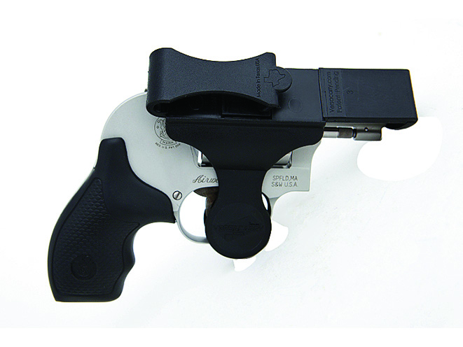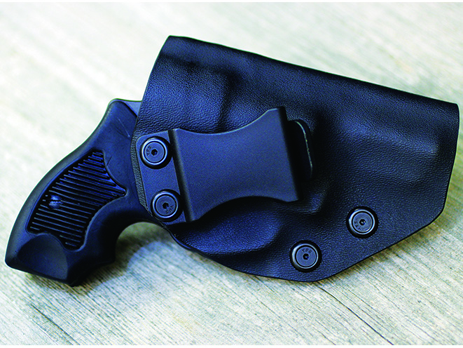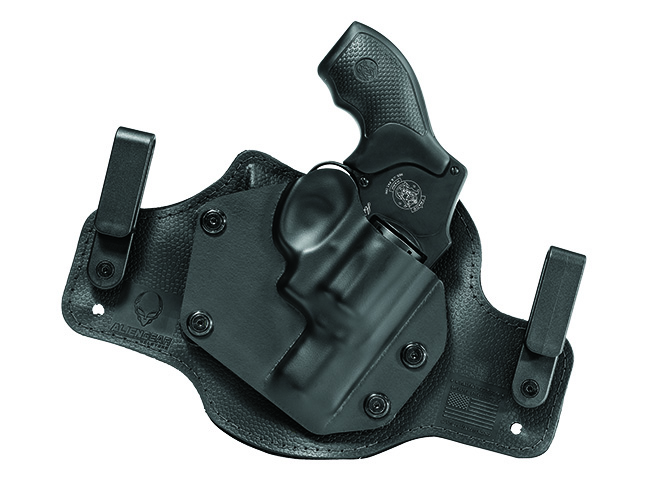 Alien Gear bills its new Cloak Tuck 3.0 inside-the-waistband (IWB) holster as being “the most comfortable concealed-carry holster on the planet.” The screws attaching the Kydex holster to the leather backer have spacers that let you set your own tension adjustment for a more secure fit or a faster draw. Alien Gear offers the Cloak Tuck 3.0 for a variety of revolvers, including those from Chiappa, Colt, EAA, Ruger, Taurus, Charter Arms and Smith & Wesson. The belt clips are adjustable for cant and height and can fit belts up to 1.75 inches wide.