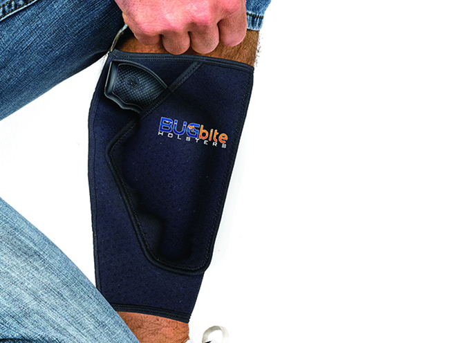 The BUGBite is a solid, reliable universal ankle holster. Made from breathable neoprene with soft cotton edging, the BUGBite is shaped like a human leg and is available in five sizes for a custom fit around your calf. It uses a zipper closure instead of Velcro so you can put it on silently like a sock and remove it silently. The universal pocket will fit guns up to 7 inches long and 5 inches tall, and there’s a spare ammo pouch on the opposite side.