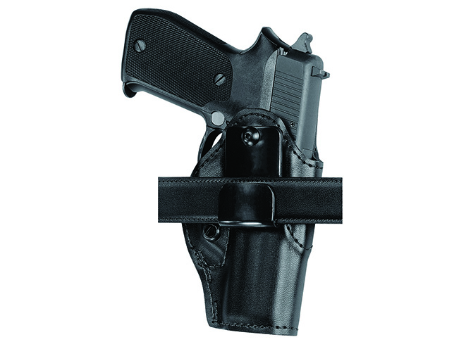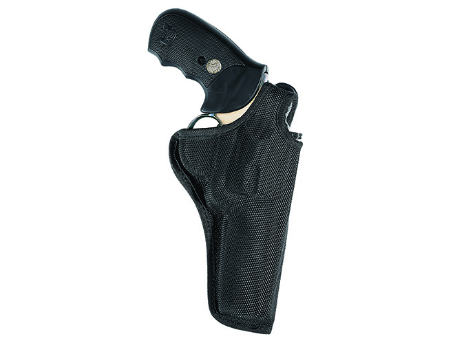 The Bianchi Model 7001 is an affordable option that can accommodate a wide range of revolvers. A thumb snap is built in, and the holster’s trilaminate construction and closed-cell-foam center protect your revolver. The outside shell is made from a durable ballistic weave for additional protection. The holster has a 10- to 13-degree forward cant, its high-ride design provides for smooth draws, and the belt loops fit belts up to 1.75 inches wide. This holster is suitable for duty use, concealed carry with a good cover garment or even hunting.