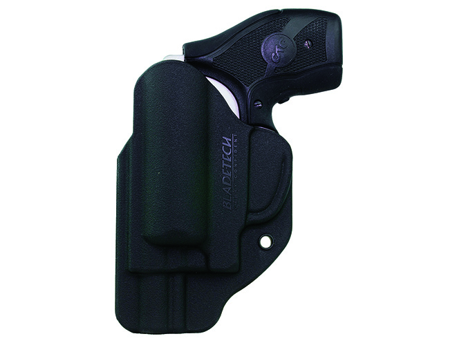 The Nano holster from Blade-Tech is an IWB rig that will accommodate S&W K- and L-Frame revolvers with barrels up to 6 inches long. It features dual sweat guards to protect the gun and increase comfort, and uses twin soft belt loops to secure the holster to the belt.