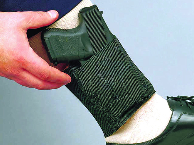The DeSantis Apache ankle rig offers comfort, security and deep concealment. The holster will fit most handguns and stays on the ankle with an elastic band that eliminates motion. The rig is made of neoprene while the interior has a sheepskin lining, and the adjustable Velcro thumb strap secures the weapon for any activity. The holster can be worn on either leg, on the inside or outside of the ankle. Left- and right-handed versions are currently available.