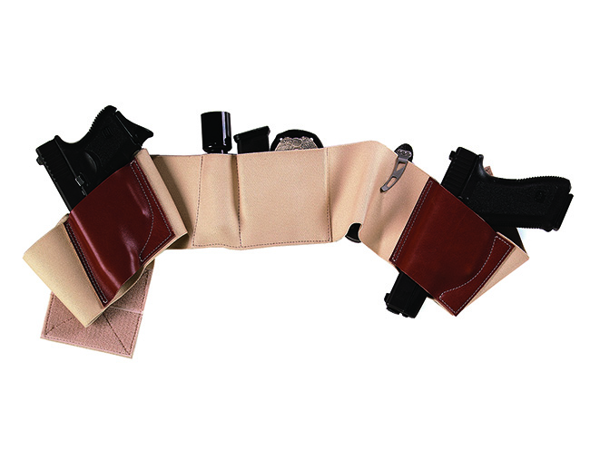 For concealed carry, Galco offers its excellent Underwraps Belly Band holsters, which provide comfort, concealability and versatility. This design is built to last with elasticized nylon and a Velcro closure for a custom fit. It also features dual leather holster pockets that will accommodate most handguns and two accessory pockets for spare ammunition or other items.