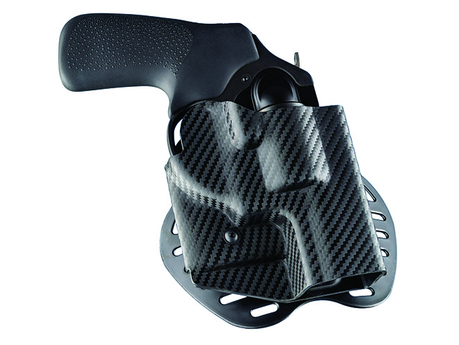 Revolvers may be archaic or a bit of a throwback to some, but they’ve never really fallen out of favor with shooters, many of whom have found that revolvers have some unique advantages over semi-autos. A well-functioning, well-maintained revolver won’t fail because of a slide obstruction, and you can fire it from inside a pocket if needed. Revolvers also lack the external safeties you’ll find on semi-autos—the levers you might forget to deactivate in a hurry. For that reason, short-barreled revolvers are extremely appealing for concealed carry. But despite the reliability and safety built into each and every revolver, you should always use a sturdy holster to keep one secure, and to protect the gun and cover the trigger. Dozens of holster companies today are making high-quality rigs to carry your wheelgun safely and comfortably. Here are several new revolver holsters from some of the most popular manufacturers.