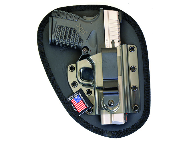 The Last Ditch from CrossBreed is not just a holster but an entire system. The company has taken its molded Kydex shell and attached it to a leather backer. The reverse side of this backer is securely covered in Velcro, which lets you use the holster in combination with many carry or hideaway options. Essentially, the holster can be attached to anything that has a corresponding Velcro surface, including CrossBreed’s own Bedside Backup platform as well as ballistic vests, vehicle mounts and some types of belly bands and undercover-carry shirts.