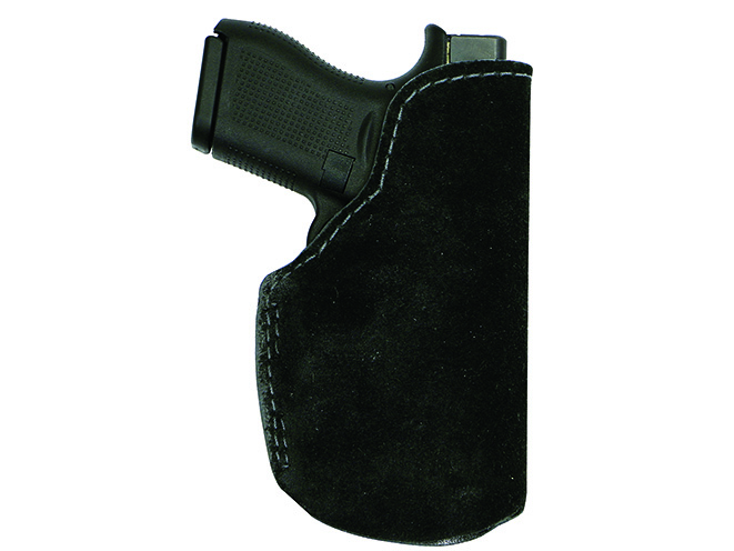 The Cozy Partner is a durable open-top IWB holster with precise molding, solid stitching and a tensioning device for secure weapon retention. Note that you must wear a belt with this holster, and the dual-snap belt loops will fit belts up to 1.5 inches wide. The top of the holster features a memory band that keep the holster’s shape under pressure and makes reholstering easy. It’s available in black or tan unlined leather.