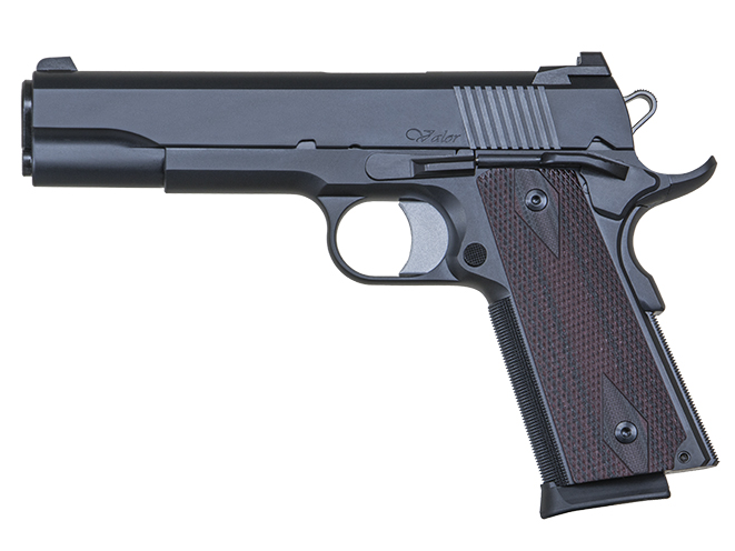 In response to customer demand, Dan Wesson is offering its Valor 1911 in blued steel with checkered, double-diamond-pattern G10 grip panels. This classic 1911 has all of the features of the stainless steel Valor, including a long trigger, a lowered and flared ejection port for enhanced reliability, a match-grade barrel and fixed night sights with a cocking ledge on the rear sight.