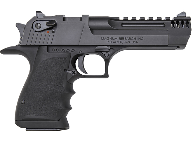The new L5 features a 5-inch barrel, a black hardcoat anodized aluminum frame and a black carbon-steel slide and barrel. It also has Hogue finger-groove rubber grips as well as Magnum Research’s highly popular integral muzzle brake. The new lighter version of this popular Desert Eagle in .44 Magnum puts it under 50 ounces, which makes it easier to carry on a hunt.