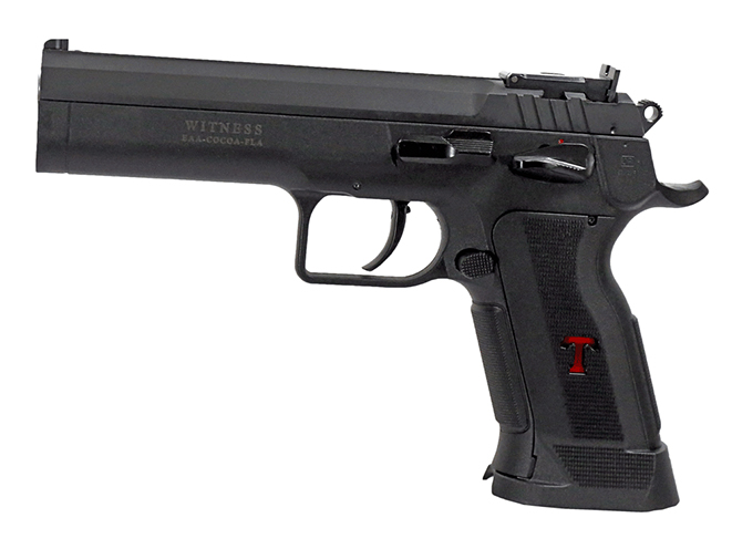 This new single action from Tanfoglio has a new polymer competition frame with a built-in magazine well. It also has a fully adjustable rear sight for precise targeting. Like the Limited Custom model, the gun comes with an extended magazine release, ambidextrous controls and a beveled magazine well. Finally, there is a handy accessory rail on the dust cover. The pistol is available in 9mm, .38 Super, .40 S&W, 10mm and .45 ACP.