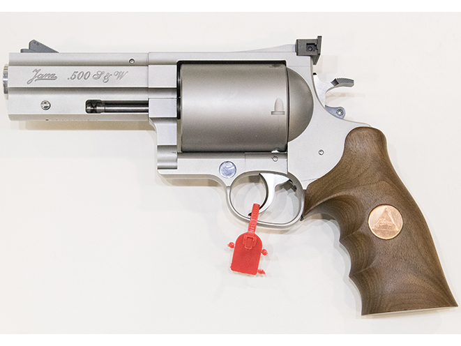 Big and bold. That’s the statement made by this German revolver imported through Texas for American shooters. Built on the company’s MA frame, this .500 S&W Magnum revolver is built for strength. The cylinder uses a dual locking system. The sights are fully adjustable, including the elevation of the front sight. The smooth wooden grips feel very nice in the hand. Barrel lengths run from 4 to 12 inches to meet your particular shooting needs.