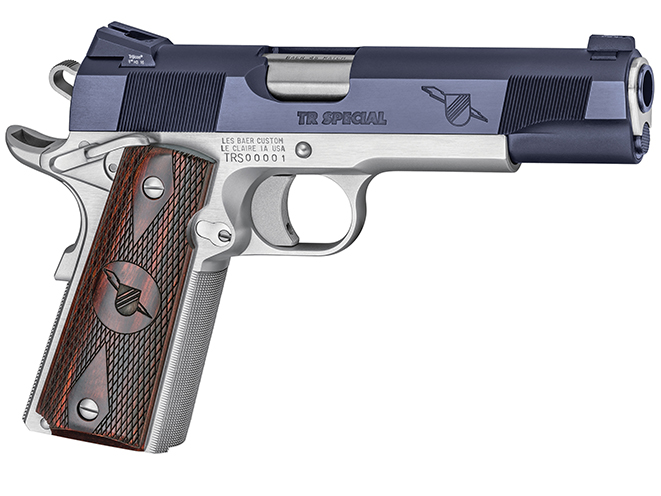 The second-generation Thunder Ranch (TR) Special from Les Baer adds an ambidextrous thumb safety, a two-tone finish and custom grips to the already well-equipped TR Special. Other features include a National Match frame, front and rear slide serrations, a National Match barrel, a polished feed ramp, tritium sights, a deluxe Commander hammer and sear, a tuned trigger and extractor and a Baer beavertail grip safety.