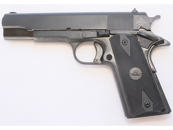 Rock Island Armory has expanded its GI series pistol line by adding a new gun in 10mm. While many of the new 10mm 1911s sport 6-inch barrels, this new, all-steel gun has a 5-inch barrel and overall dimensions very similar to other Government Model 1911s. The pistol’s design is a combination of features from the 1911 and 1911A1, with a short trigger and a flat mainspring housing.