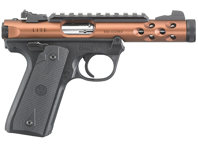 The new 22/45 Lite is the Mark IV version of the popular aluminum and polymer pistol that Ruger introduced several years ago. This pistol has a threaded 4.4-inch barrel, an adjustable rear sight and a Picatinny rail for optics. The checkered polymer grip panels and checkered front- and backstraps assure a firm grip in rapid fire. You can choose between models with black or bronze upper assemblies.