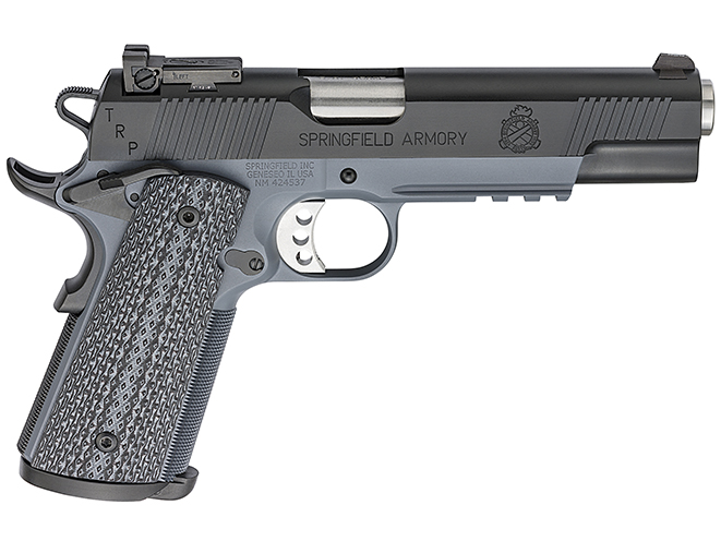 This new, all-steel Springfield 1911 features a 5-inch bull barrel, fully adjustable three-dot tritium sights, G10 grip panels, a forged steel frame finished in grey Armory Kote with an integral rail, front and rear serrations on the black Armory Kote slide, a full-length guide rod and a long aluminum, match-grade trigger with a 4.5- to 5-pound pull.