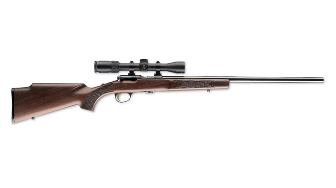 Browning T-Bolt Target/Varmint: Recently introduced to the shooting public, the new Browning T-Bolt series has arrived with both synthetic- and wood-stocked models. For my use, I like the T-Bolt Target/Varmint with its clean-looking design and heavier barrel, which is ideal for the rimfire shooters. I am partial to wood-stocked guns, so naturally the wood T-Bolt, with its medium target-contoured barrel, adjustable trigger and match chamber, is most to my liking.
