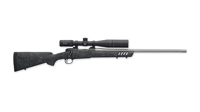 Browning X-Bolt Varmint Stalker: For those who like to sit and snipe at varmints from a camouflaged position, Browning provides the X-Bolt Varmint Stalker, a gun made for the four-season hunter, complete with a stout barrel and synthetic stock.