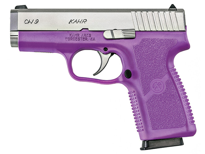 “Based upon Kahr’s medium-sized polymer frame, the CW9 Purple has a 3.6-inch barrel, an overall length of 5.9 inches and the magazine holds seven rounds.”