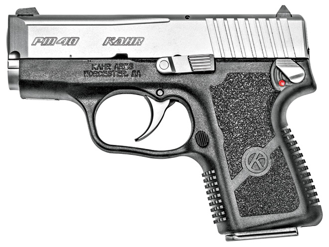 The .40 S&W cartridge is the most popular police round in the U.S. today, and Kahr offers a variety of pistols chambered for it. I feel one of the more attractive designs is the PM40. Thanks to its polymer frame, it weighs only 17.7 ounces and it has an overall length of just 5.47 inches. With its stainless steel/polymer construction, the PM40 ought to be able to stand up to moisture, wear, perspiration and anything that Mother Nature might subject it to and keep on working.