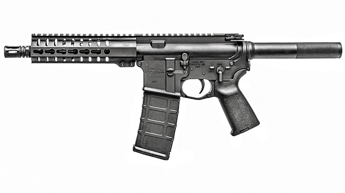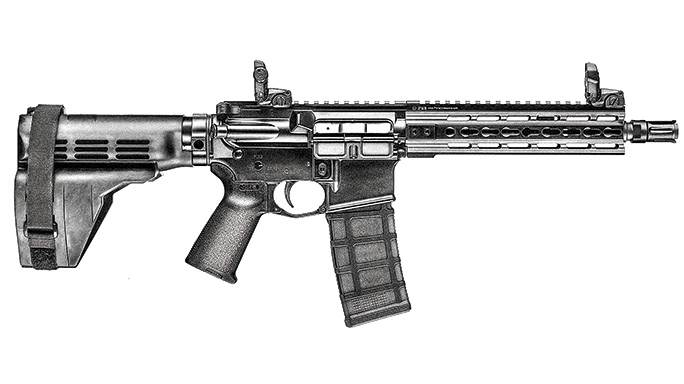 look no further than the CORE15 Roscoe RB2 from CORE Rifle Systems. This American-made pistol comes with forged 7075-T6 receivers, a 10.5-inch, chrome-moly barrel, a carbine-length gas system, a KeyMod forend, M4 feed ramps, a Sig Sauer SB15 stabilizing brace, an Ergo Swift grip, a Midwest Industries flash suppressor and a Magpul PMAG. (coreriflesystems.com)