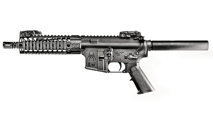 The Spike’s Tactical ST-15 LE Pistol is designed as a fully mil-spec pistol series for every level of shooter. This pistol has the same level of quality and performance that you have come to expect from Spike’s Tactical while still being affordable. Each component is manufactured to mil-spec standards and backed by the Spike’s Tactical lifetime warranty. Features include an 8.1-inch, cold-hammer-forged, 1-in-7-inch-twist barrel, a pistol-length gas system, an M16 bolt carrier group, an ST-T2 tungsten buffer and flip-up Magpul MBUS backup sights. (spikestactical.com; 407-928-2666)